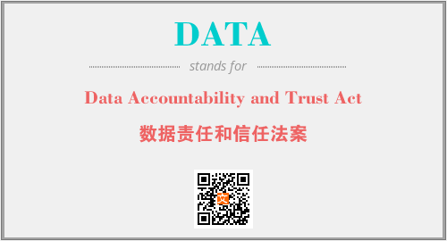 上述内容是“Data Accountability and Trust Act”作为“DATA”的缩写,解释为“数据责任和信任法案”时的信息,以及英文缩略词DATA所代表的英文单词,其对应的中文拼音、详细解释以及在英文中的流行度和相关分类、应用领域及应用示例等。