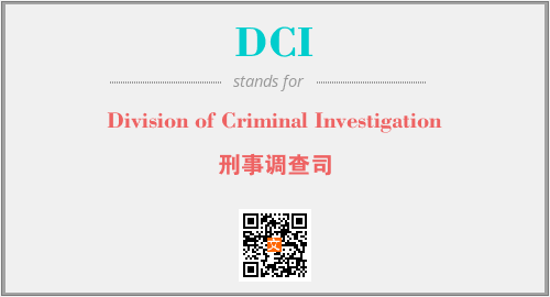 上述内容是“Division of Criminal Investigation”作为“DCI”的缩写,解释为“刑事调查司”时的信息,以及英文缩略词DCI所代表的英文单词,其对应的中文拼音、详细解释以及在英文中的流行度和相关分类、应用领域及应用示例等。