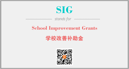 上述内容是“School Improvement Grants”作为“SIG”的缩写,解释为“学校改善补助金”时的信息,以及英文缩略词SIG所代表的英文单词,其对应的中文拼音、详细解释以及在英文中的流行度和相关分类、应用领域及应用示例等。