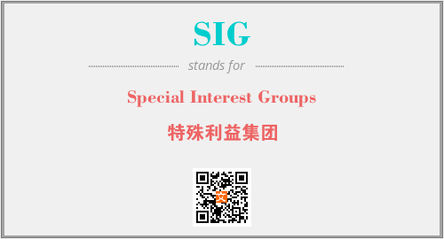 上述内容是“Special Interest Groups”作为“SIG”的缩写,解释为“特殊利益集团”时的信息,以及英文缩略词SIG所代表的英文单词,其对应的中文拼音、详细解释以及在英文中的流行度和相关分类、应用领域及应用示例等。