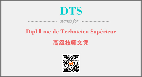 上述内容是“Diplôme de Technicien Supérieur”作为“DTS”的缩写,解释为“高级技师文凭”时的信息,以及英文缩略词DTS所代表的英文单词,其对应的中文拼音、详细解释以及在英文中的流行度和相关分类、应用领域及应用示例等。