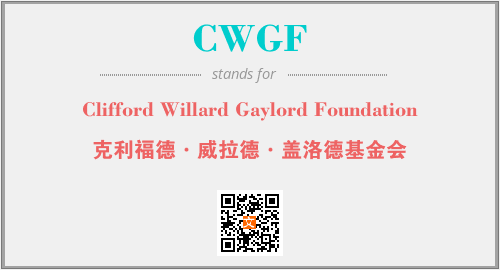上述内容是“Clifford Willard Gaylord Foundation”作为“CWGF”的缩写,解释为“克利福德·威拉德·盖洛德基金会”时的信息,以及英文缩略词CWGF所代表的英文单词,其对应的中文拼音、详细解释以及在英文中的流行度和相关分类、应用领域及应用示例等。