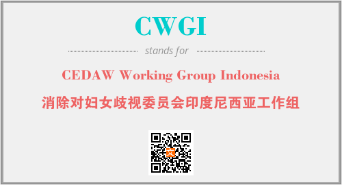 英文缩略词“CWGI”经常作为“CEDAW Working Group Indonesia”的英文缩写来使用,中文表示:“消除对妇女歧视委员会印度尼西亚工作组”。本文将详细介绍英文缩写词CWGI所代表英文单词,其对应的中文拼音、详细解释以及在英语中的流行度。此外,还有关于缩略词CWGI的分类、应用领域及相关应用示例等。