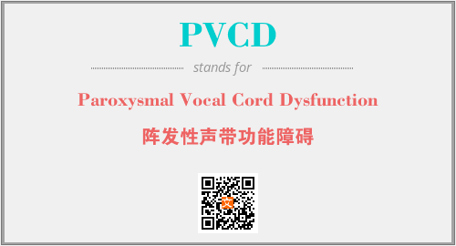 英文缩略词“PVCD”经常作为“Paroxysmal Vocal Cord Dysfunction”的英文缩写来使用,中文表示:“阵发性声带功能障碍”。本文将详细介绍英文缩写词PVCD所代表英文单词,其对应的中文拼音、详细解释以及在英语中的流行度。此外,还有关于缩略词PVCD的分类、应用领域及相关应用示例等。