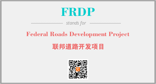 英文缩略词“FRDP”经常作为“Federal Roads Development Project”的英文缩写来使用,中文表示:“联邦道路开发项目”。本文将详细介绍英文缩写词FRDP所代表英文单词,其对应的中文拼音、详细解释以及在英语中的流行度。此外,还有关于缩略词FRDP的分类、应用领域及相关应用示例等。