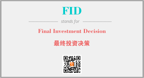 上述内容是“Final Investment Decision”作为“FID”的缩写,解释为“最终投资决策”时的信息,以及英文缩略词FID所代表的英文单词,其对应的中文拼音、详细解释以及在英文中的流行度和相关分类、应用领域及应用示例等。