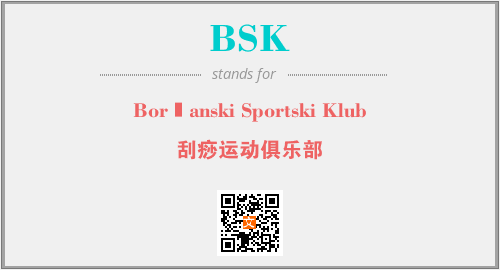 上述内容是“Borčanski Sportski Klub”作为“BSK”的缩写,解释为“刮痧运动俱乐部”时的信息,以及英文缩略词BSK所代表的英文单词,其对应的中文拼音、详细解释以及在英文中的流行度和相关分类、应用领域及应用示例等。