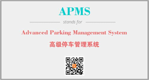 英文缩略词“APMS”经常作为“Advanced Parking Management System”的英文缩写来使用,中文表示:“高级停车管理系统”。本文将详细介绍英文缩写词APMS所代表英文单词,其对应的中文拼音、详细解释以及在英语中的流行度。此外,还有关于缩略词APMS的分类、应用领域及相关应用示例等。