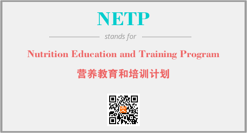 以上为Nutrition Education and Training Program英文缩略词NETP的中文解释,以及该英文缩写在英语的流行度、分类和应用领域方面的信息。