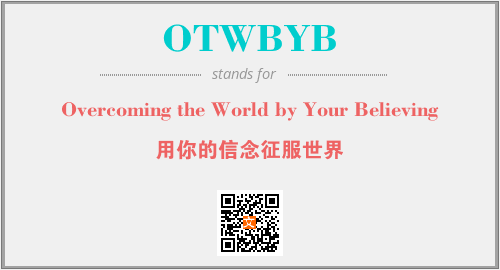 英文缩略词“OTWBYB”经常作为“Overcoming the World by Your Believing”的英文缩写来使用,中文表示:“用你的信念征服世界”。本文将详细介绍英文缩写词OTWBYB所代表英文单词,其对应的中文拼音、详细解释以及在英语中的流行度。此外,还有关于缩略词OTWBYB的分类、应用领域及相关应用示例等。