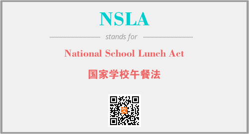 上述内容是“National School Lunch Act”作为“NSLA”的缩写,解释为“国家学校午餐法”时的信息,以及英文缩略词NSLA所代表的英文单词,其对应的中文拼音、详细解释以及在英文中的流行度和相关分类、应用领域及应用示例等。