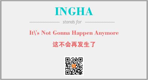 上述内容是“It\'s Not Gonna Happen Anymore”作为“INGHA”的缩写,解释为“这不会再发生了”时的信息,以及英文缩略词INGHA所代表的英文单词,其对应的中文拼音、详细解释以及在英文中的流行度和相关分类、应用领域及应用示例等。
