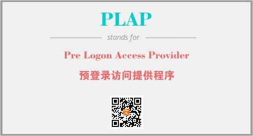 以上为Pre Logon Access Provider英文缩略词PLAP的中文解释,以及该英文缩写在英语的流行度、分类和应用领域方面的信息。