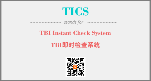 英文缩略词“TICS”经常作为“TBI Instant Check System”的英文缩写来使用,中文表示:“TBI即时检查系统”。本文将详细介绍英文缩写词TICS所代表英文单词,其对应的中文拼音、详细解释以及在英语中的流行度。此外,还有关于缩略词TICS的分类、应用领域及相关应用示例等。