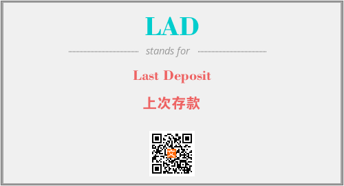 上述内容是“Last Deposit”作为“LAD”的缩写,解释为“上次存款”时的信息,以及英文缩略词LAD所代表的英文单词,其对应的中文拼音、详细解释以及在英文中的流行度和相关分类、应用领域及应用示例等。