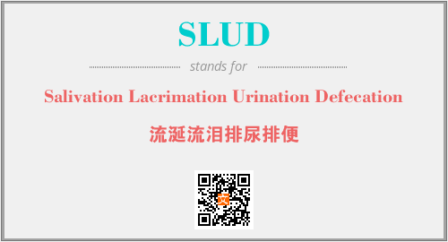 上述内容是“Salivation Lacrimation Urination Defecation”作为“SLUD”的缩写,解释为“流涎流泪排尿排便”时的信息,以及英文缩略词SLUD所代表的英文单词,其对应的中文拼音、详细解释以及在英文中的流行度和相关分类、应用领域及应用示例等。