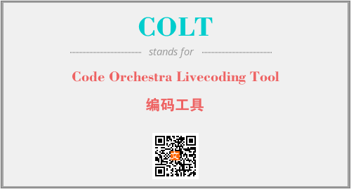 英文缩略词“COLT”经常作为“Code Orchestra Livecoding Tool”的英文缩写来使用,中文表示:“编码工具”。本文将详细介绍英文缩写词COLT所代表英文单词,其对应的中文拼音、详细解释以及在英语中的流行度。此外,还有关于缩略词COLT的分类、应用领域及相关应用示例等。