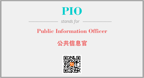 上述内容是“Public Information Officer”作为“PIO”的缩写,解释为“公共信息官”时的信息,以及英文缩略词PIO所代表的英文单词,其对应的中文拼音、详细解释以及在英文中的流行度和相关分类、应用领域及应用示例等。