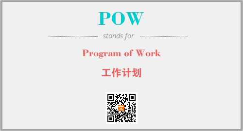 英文缩略词“POW”经常作为“Program of Work”的英文缩写来使用,中文表示:“工作计划”。本文将详细介绍英文缩写词POW所代表英文单词,其对应的中文拼音、详细解释以及在英语中的流行度。此外,还有关于缩略词POW的分类、应用领域及相关应用示例等。