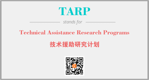 英文缩略词“TARP”经常作为“Technical Assistance Research Programs”的英文缩写来使用,中文表示:“技术援助研究计划”。本文将详细介绍英文缩写词TARP所代表英文单词,其对应的中文拼音、详细解释以及在英语中的流行度。此外,还有关于缩略词TARP的分类、应用领域及相关应用示例等。