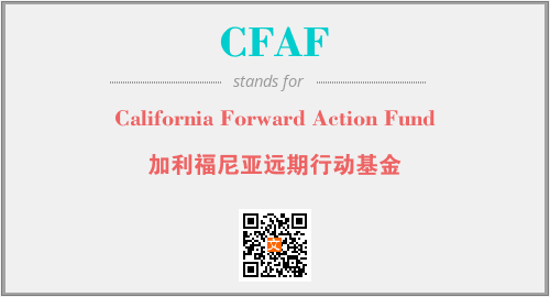 上述内容是“California Forward Action Fund”作为“CFAF”的缩写,解释为“加利福尼亚远期行动基金”时的信息,以及英文缩略词CFAF所代表的英文单词,其对应的中文拼音、详细解释以及在英文中的流行度和相关分类、应用领域及应用示例等。