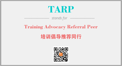 上述内容是“Training Advocacy Referral Peer”作为“TARP”的缩写,解释为“培训倡导推荐同行”时的信息,以及英文缩略词TARP所代表的英文单词,其对应的中文拼音、详细解释以及在英文中的流行度和相关分类、应用领域及应用示例等。
