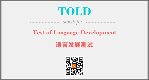 英文缩略词“TOLD”经常作为“Test of Language Development”的英文缩写来使用,中文表示:“语言发展测试”。本文将详细介绍英文缩写词TOLD所代表英文单词,其对应的中文拼音、详细解释以及在英语中的流行度。此外,还有关于缩略词TOLD的分类、应用领域及相关应用示例等。