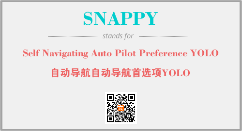上述内容是“Self Navigating Auto Pilot Preference YOLO”作为“SNAPPY”的缩写,解释为“自动导航自动导航首选项YOLO”时的信息,以及英文缩略词SNAPPY所代表的英文单词,其对应的中文拼音、详细解释以及在英文中的流行度和相关分类、应用领域及应用示例等。