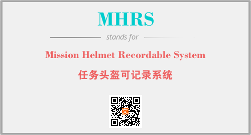 上述内容是“Mission Helmet Recordable System”作为“MHRS”的缩写,解释为“任务头盔可记录系统”时的信息,以及英文缩略词MHRS所代表的英文单词,其对应的中文拼音、详细解释以及在英文中的流行度和相关分类、应用领域及应用示例等。