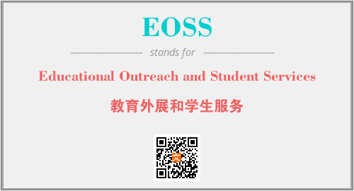上述内容是“Educational Outreach and Student Services”作为“EOSS”的缩写,解释为“教育外展和学生服务”时的信息,以及英文缩略词EOSS所代表的英文单词,其对应的中文拼音、详细解释以及在英文中的流行度和相关分类、应用领域及应用示例等。