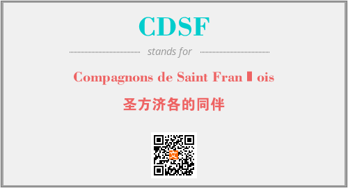 上述内容是“Compagnons de Saint François”作为“CDSF”的缩写,解释为“圣方济各的同伴”时的信息,以及英文缩略词CDSF所代表的英文单词,其对应的中文拼音、详细解释以及在英文中的流行度和相关分类、应用领域及应用示例等。