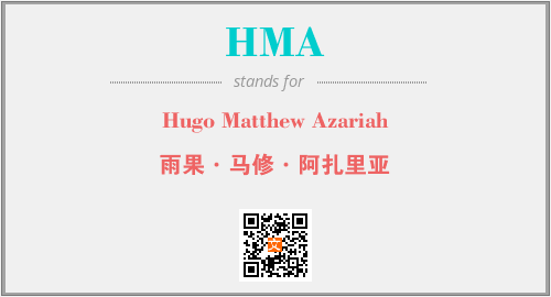 上述内容是“Hugo Matthew Azariah”作为“HMA”的缩写,解释为“雨果·马修·阿扎里亚”时的信息,以及英文缩略词HMA所代表的英文单词,其对应的中文拼音、详细解释以及在英文中的流行度和相关分类、应用领域及应用示例等。