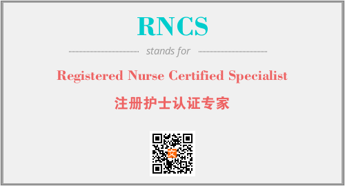 上述内容是“Registered Nurse Certified Specialist”作为“RNCS”的缩写,解释为“注册护士认证专家”时的信息,以及英文缩略词RNCS所代表的英文单词,其对应的中文拼音、详细解释以及在英文中的流行度和相关分类、应用领域及应用示例等。