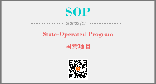 上述内容是“State-Operated Program”作为“SOP”的缩写,解释为“国营项目”时的信息,以及英文缩略词SOP所代表的英文单词,其对应的中文拼音、详细解释以及在英文中的流行度和相关分类、应用领域及应用示例等。