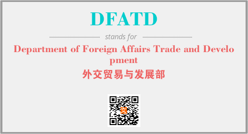 上述内容是“Department of Foreign Affairs Trade and Development”作为“DFATD”的缩写,解释为“外交贸易与发展部”时的信息,以及英文缩略词DFATD所代表的英文单词,其对应的中文拼音、详细解释以及在英文中的流行度和相关分类、应用领域及应用示例等。
