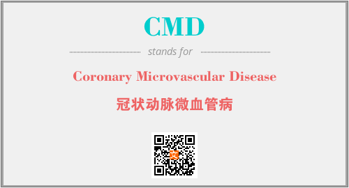 上述内容是“Coronary Microvascular Disease”作为“CMD”的缩写,解释为“冠状动脉微血管病”时的信息,以及英文缩略词CMD所代表的英文单词,其对应的中文拼音、详细解释以及在英文中的流行度和相关分类、应用领域及应用示例等。