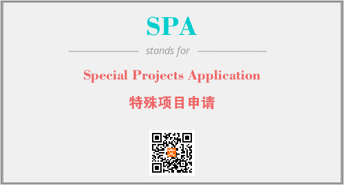 上述内容是“Special Projects Application”作为“SPA”的缩写,解释为“特殊项目申请”时的信息,以及英文缩略词SPA所代表的英文单词,其对应的中文拼音、详细解释以及在英文中的流行度和相关分类、应用领域及应用示例等。