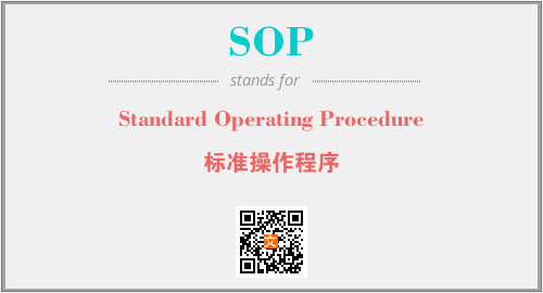 上述内容是“Standard Operating Procedure”作为“SOP”的缩写,解释为“标准操作程序”时的信息,以及英文缩略词SOP所代表的英文单词,其对应的中文拼音、详细解释以及在英文中的流行度和相关分类、应用领域及应用示例等。