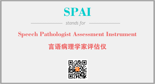 上述内容是“Speech Pathologist Assessment Instrument”作为“SPAI”的缩写,解释为“言语病理学家评估仪”时的信息,以及英文缩略词SPAI所代表的英文单词,其对应的中文拼音、详细解释以及在英文中的流行度和相关分类、应用领域及应用示例等。