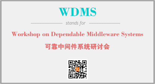 上述内容是“Workshop on Dependable Middleware Systems”作为“WDMS”的缩写,解释为“可靠中间件系统研讨会”时的信息,以及英文缩略词WDMS所代表的英文单词,其对应的中文拼音、详细解释以及在英文中的流行度和相关分类、应用领域及应用示例等。