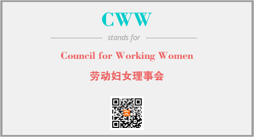 上述内容是“Council for Working Women”作为“CWW”的缩写,解释为“劳动妇女理事会”时的信息,以及英文缩略词CWW所代表的英文单词,其对应的中文拼音、详细解释以及在英文中的流行度和相关分类、应用领域及应用示例等。