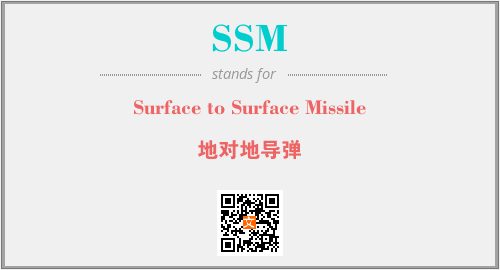 上述内容是“Surface to Surface Missile”作为“SSM”的缩写,解释为“地对地导弹”时的信息,以及英文缩略词SSM所代表的英文单词,其对应的中文拼音、详细解释以及在英文中的流行度和相关分类、应用领域及应用示例等。