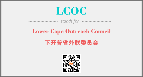 上述内容是“Lower Cape Outreach Council”作为“LCOC”的缩写,解释为“下开普省外联委员会”时的信息,以及英文缩略词LCOC所代表的英文单词,其对应的中文拼音、详细解释以及在英文中的流行度和相关分类、应用领域及应用示例等。