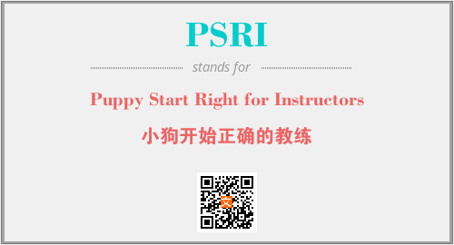 英文缩略词“PSRI”经常作为“Puppy Start Right for Instructors”的英文缩写来使用,中文表示:“小狗开始正确的教练”。本文将详细介绍英文缩写词PSRI所代表英文单词,其对应的中文拼音、详细解释以及在英语中的流行度。此外,还有关于缩略词PSRI的分类、应用领域及相关应用示例等。