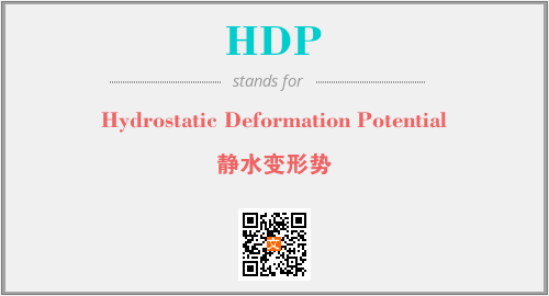 上述内容是“Hydrostatic Deformation Potential”作为“HDP”的缩写,解释为“静水变形势”时的信息,以及英文缩略词HDP所代表的英文单词,其对应的中文拼音、详细解释以及在英文中的流行度和相关分类、应用领域及应用示例等。