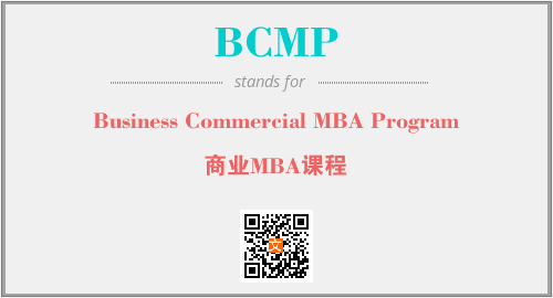 上述内容是“Business Commercial MBA Program”作为“BCMP”的缩写,解释为“商业MBA课程”时的信息,以及英文缩略词BCMP所代表的英文单词,其对应的中文拼音、详细解释以及在英文中的流行度和相关分类、应用领域及应用示例等。