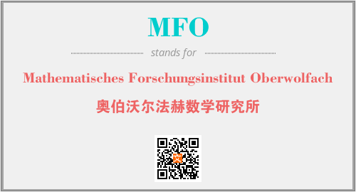 上述内容是“Mathematisches Forschungsinstitut Oberwolfach”作为“MFO”的缩写,解释为“奥伯沃尔法赫数学研究所”时的信息,以及英文缩略词MFO所代表的英文单词,其对应的中文拼音、详细解释以及在英文中的流行度和相关分类、应用领域及应用示例等。