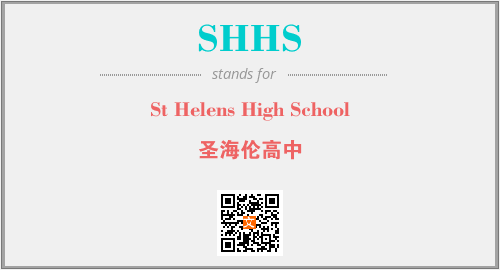 上述内容是“St Helens High School”作为“SHHS”的缩写,解释为“圣海伦高中”时的信息,以及英文缩略词SHHS所代表的英文单词,其对应的中文拼音、详细解释以及在英文中的流行度和相关分类、应用领域及应用示例等。