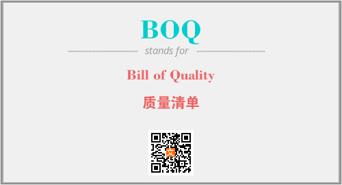 英文缩略词“BOQ”经常作为“Bill of Quality”的英文缩写来使用,中文表示:“质量清单”。本文将详细介绍英文缩写词BOQ所代表英文单词,其对应的中文拼音、详细解释以及在英语中的流行度。此外,还有关于缩略词BOQ的分类、应用领域及相关应用示例等。