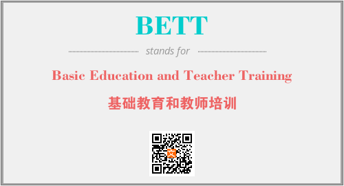 英文缩略词“BETT”经常作为“Basic Education and Teacher Training”的英文缩写来使用,中文表示:“基础教育和教师培训”。本文将详细介绍英文缩写词BETT所代表英文单词,其对应的中文拼音、详细解释以及在英语中的流行度。此外,还有关于缩略词BETT的分类、应用领域及相关应用示例等。